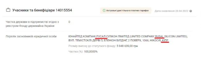 Данные YouControl подтверждают, что основатель ООО «Глуховский карьер кварцитов» – зарегистрированная на Кипре структура российского «Русала». А руководителем объединенной компании «Русал» и En+ Group является именно Олег Дерипаска.