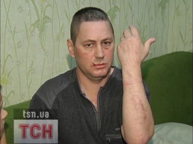 В квартиру ворвались следователи и вооруженные бойцы "Беркута". Они надели на инвалида наручники и повалили его на пол. Потом его били по голове и завязывали жгутом запястья.