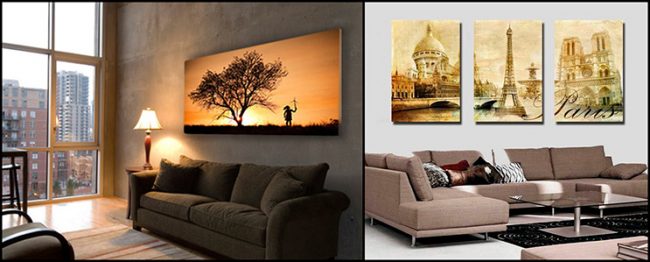 Повесив напечатанную репродукцию на стену, вы не отличите её от настоящего произведения искусства. Украсить комнату также может семейный портрет, фотография близкого человека или красивый кадр с летнего отдыха.