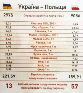 В брошюре есть раздел "Покращено" для людей", в котором отмечается, что за последний год стоимость овощей борщевого набора выросла на 61% (см. фото). Также сообщается, что задолженность по выплате заработной платы выросла на 893,7 млн грн в январе 2013 года до 1102,5 млн. грн. в марте 2013 года.