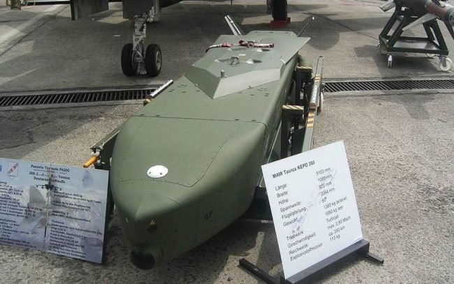 Крылатая ракета Taurus – это авиационная крылатая ракета класса воздух-земля, предназначенная для высокоточных ударов и поражения высокозащищенных и углубленных целей. Taurus является прямым конкурентом крылатой ракеты Storm Shadow, совместной англо-французской разработки. При этом, как отметил военный эксперт Александр Коваленко, на самом деле ракета Taurus является аналогом британских Storm Shadow, их отличия очень незначительны. Оба вида ракет можно использовать очень гибко, но дальность действия немецкой ракеты немного больше. Ракета находится на вооружении Бундесвера с 2005 года и имеет дальность поражения 500 км. Но, как подчеркивают эксперты, экспортные версии обладают значительно меньшим расстоянием полета от 300 до 400 км.