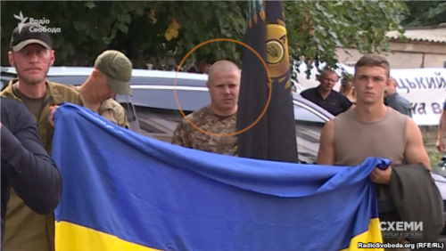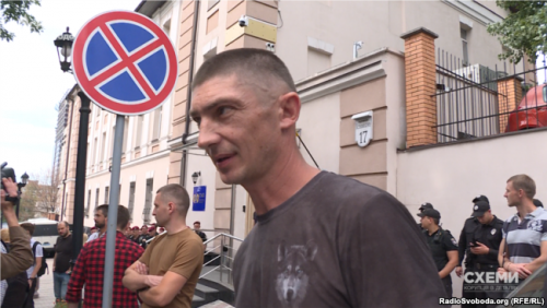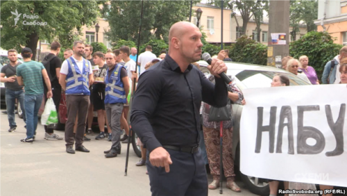 Это уже второй участник акции под стенами антикоррупционной прокуратуры, назвавшийся членом Всеукраинского союза ветеранов АТО. Это общественная организация, которой руководит бывший советник министра внутренних дел Илья Кива.