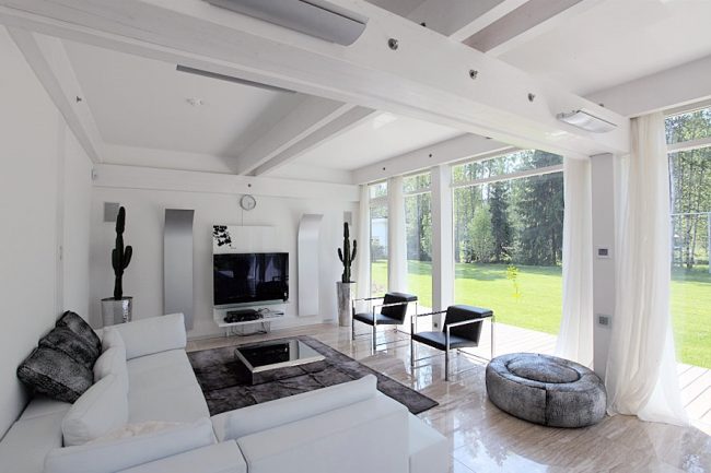 Более актуальным на сегодня считается ассиметричное равновесие. Хороший пример – с одной стороны комнаты чёрный диван, а напротив белое кресло. Для равновесия за диваном следует поставить белый шкаф, например. Без него акцент будет смещаться в сторону дивана или кресла в зависимости от зрительного восприятия человека.