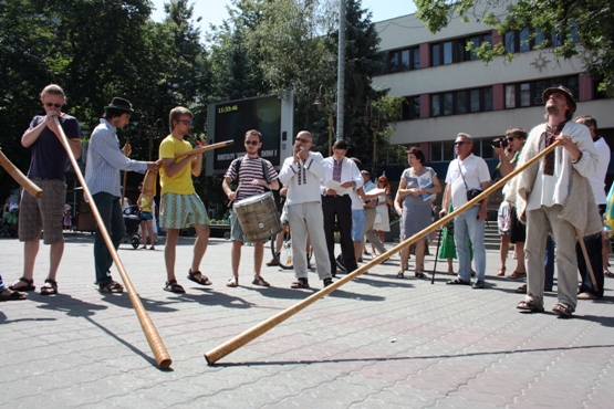 Организаторы акции, которые были одеты в национальные костюмы, пригласили на акцию музыкантов, которые играли на народных инструментах. Все вместе они требовали, чтобы гуцульскому диалекту присвоили статус регионального языка.