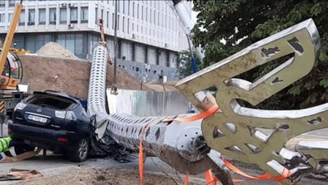 Упавший в Херсоне во время установки гигантский флагшток раздавил Lexus чиновника, который в команде губернатора отвечает за капитальное строительство и все подряды.