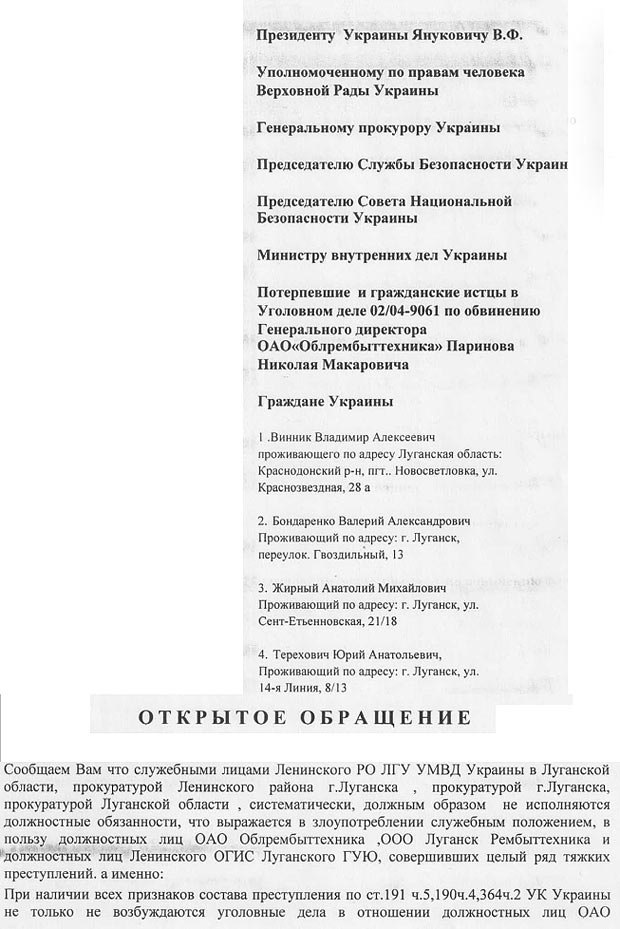 В распоряжение LB.ua попало открытое обращение по поводу отказа в проверке местных должностных лиц на предмет хищения золота и оборудования на большую сумму.