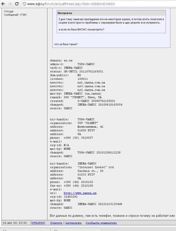 До истории с арестом серверов, если кто-то хотел связаться с ex.ua, ему предлагались контакты именно "Глонет".