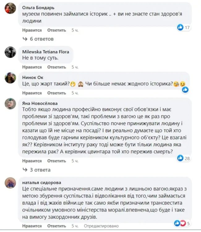Однако нашлись и те, кто полностью поддержал хейт в сторону и.о. директора музея. Они интересовались, неужели нет другого историка на эту должность, а некоторые даже предположили, что назначение Гасиджак делается специально, чтобы вызвать «возмущение в обществе».