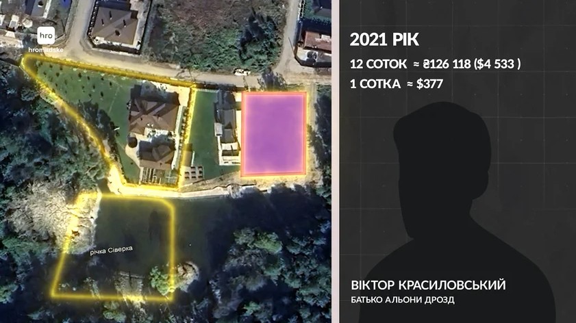 Сначала Алексей Дрозд купил земельный участок возле Вити-Почтовой. 24 сотки земли ему удалось приобрести за 49 595 гривен — менее 2000 долларов в то время. Или 76 долларов за сотку.