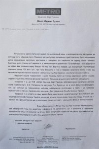 Получено обращение к Кабинету Министров Украины от директора ""МЕТРО Кеш енд Кери Украина" Жако Булена.
