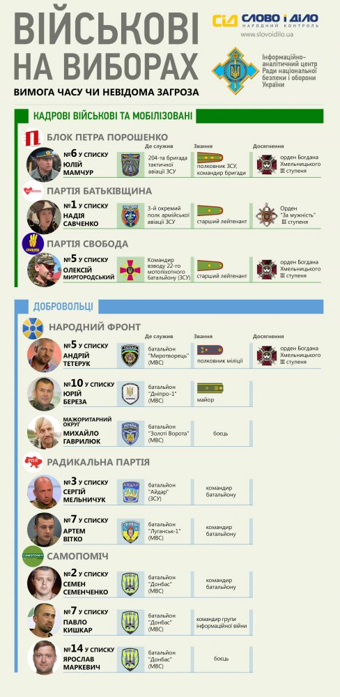 В этом вопросе и заключается наибольшая опасность. Ведь остается только гадать, к чему может привести приход военных и командиров добровольческих подразделений в большую политику. Сейчас они массированно представлены в избирательных списках почти в каждой политической партии. Ведь именно у этих людей будут все возможности возглавить настоящий социальный бунт военных, который может завершиться именно военным переворотом.