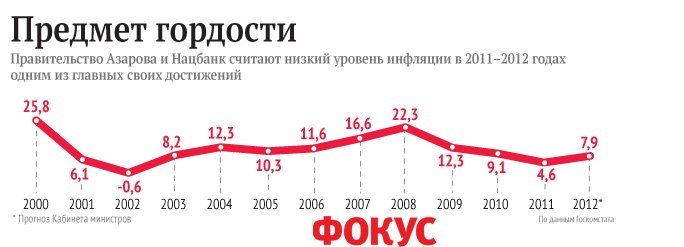 «Последовательно инфляция планируется уже на уровне однозначной цифры. Это для Украины очень большое достижение», — не скрывает радости премьер-министр Николай Азаров. С 2004 года до прихода к власти команды Януковича инфляция в Украине никогда не падала ниже 10% в год, и только в 2010-м наступил перелом: 9,1%, а затем и рекордно низкие 4,6%. В 2012-м скачка вверх, судя по I кварталу, не будет.