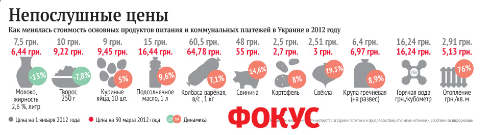 По данным Госкомстата, инфляция в Украине в I квартале 2012 года составила всего 0,7%, то есть основные товары и услуги, которыми пользуются украинцы, с начала года прибавили в цене менее процента. Этот показатель — минимальный за всю историю статистических наблюдений в нашей стране, за исключением дефляционного 2002 года. Украина даже утёрла нос некоторым членам ЕС, в частности, Литве, где инфляция в этом году ежемесячно росла на 0,4%.