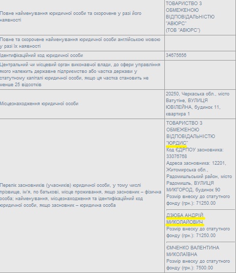 Вячеслав Яковлев является одним из учредителей некоего ООО «Юрдис», а эта фирма в свою очередь имеет долю в уставном капитале ООО «Авюрс». И именно долей в «Авюрсе» владеет Андрей Дзюба.