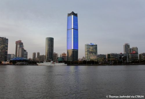 Это фото сделано на вертолетной площадке новейшего небоскреба — офисного здания Sinar Mas Plaza в Шанхае, открытого в 2017 году. Единственного небоскреба в «старом Шанхае», на левом берегу Хуанпу.