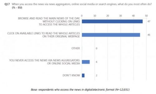 Даже простое использование ссылки на сайт в результатах выдачи Google будет запрещено, если поисковая машина не будет иметь соответствующего соглашения с издателями. Для борьбы даже с простыми ссылками Европейская Комиссия в далеком 2016-м году провела опрос о поведении европейцев в Интернете (Flash Eurobarometer 437, Internet users ‘preferences for accessing content online). Согласно результам этого исследования, 47% пользователей Интернета даже не открывают ссылку с полным текстом новости, а им достаточно прочитать заголовок.