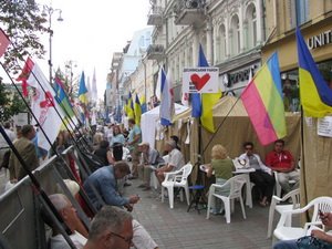 В центре Киева жизнь бьет ключом. Кто-то митингует, требуя выпустить из СИЗО лидера оппозиции Юлию Тимошенко. Они незамысловато, но весьма злобно, высмеивают тех, кого считают ее тюремщиками. Другие вышли на Крещатик, чтобы выразить солидарность с теми самыми «тюремщиками», которых они называют борцами с коррупционной гадиной. Имя этой «гадины» они белым по черному написали на профессионально выполненных плакатах и растяжках…