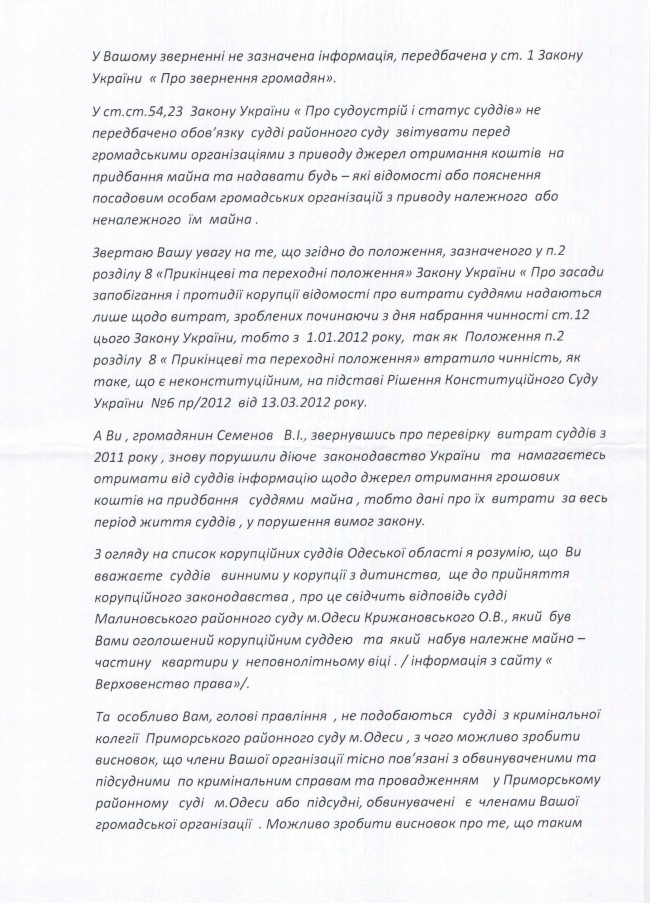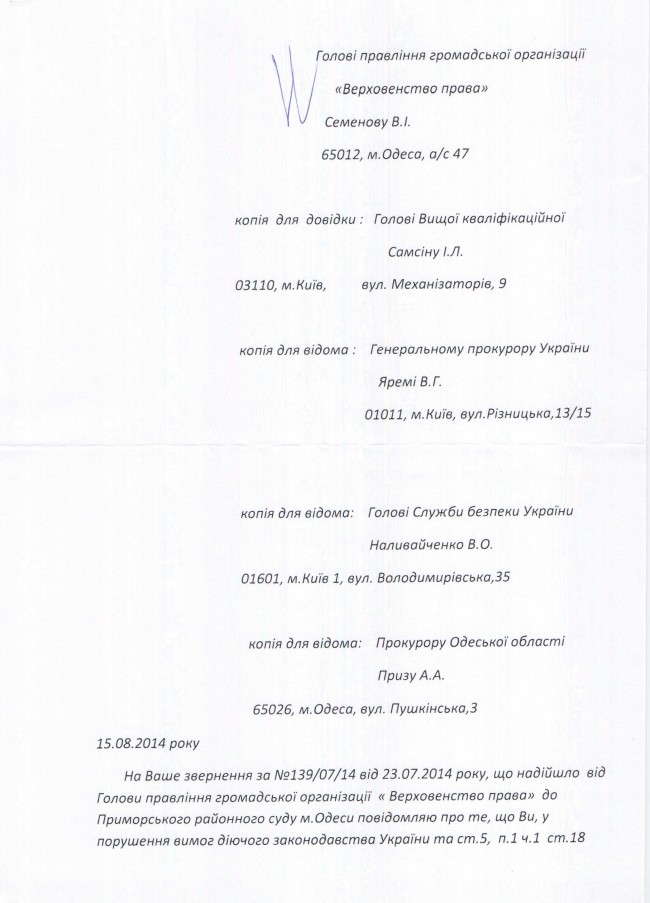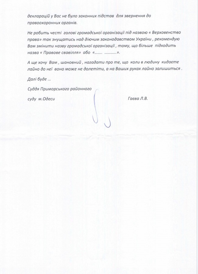 Один из таких запросов был направлен судье Приморского районного суда г. Одессы Гаевой Людмиле Вадимовне.