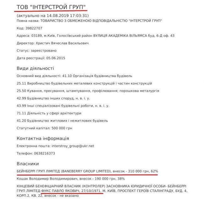 Отметим, что единственным основателем ООО «Интерстрой Груп» до начала 2017 года был Даниил Привалов — сын Харьковского городского головы Геннадия Кернеса.