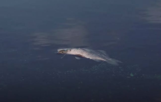 «На этом видео Днепр. Зеленый, мутный, умоляющий о помощи и умирающий. Страшная вонь. Гибнущая от недостатка кислорода рыба», — пишет Фирсов в комментарии к записи.