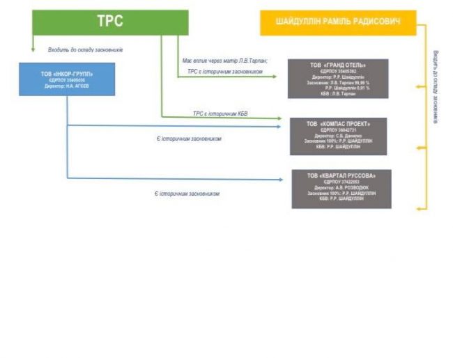 Такие одесские компании, как «Гранд Отель», «Компас Проект» и «Квартал Руссова», по данным Реестров, прямо или косвенно принадлежат Тарпану.