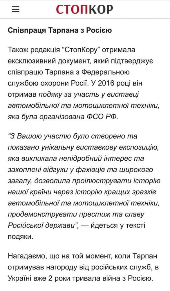 Вместе с этим, по данным расследования украинского издания «Комментарии», присвоенные средства могли выводиться Тарпаном в РФ.