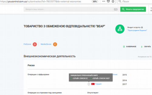В том числе компания «Веар» производила операции с турецкой оффшорной компанией из «серых списков» ЕС и Организации экономического сотрудничества и развития.