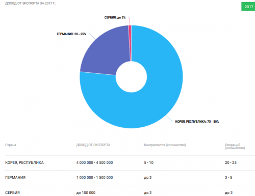 В 2017ом «Веар» экспортировала в Словакию и Турцию. Официальный доход от экспорта лесоматериалов в 2017 году у этого ООО составил 550 тысяч гривен.