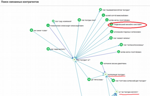 Так выглядят связи частного акционерного общества «Автомобильная компания Богдан моторс» (Код: 05808592) – того АК «Богдан», от которого Свинарчук «открещивался» во время заседания ВАКС, в котором избиралась его мера пресечения.