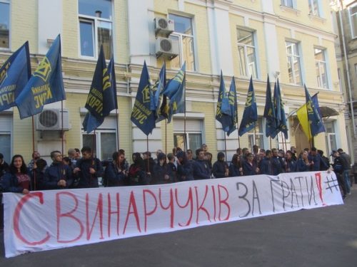 19 октября, 12.00. заседание суда относительно избрания меры пресечения г-ну С. продолжается. Под зданием скандируют представители «Нацкорпуса»: «Гладковського – за грати! Свінарчук, під арешт!».