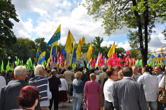 Оппозиция 20-летие Независимости решила встретить в уже традиционном для себя месте: около памятника Тарасу Шевченко, в одноименном парке. За день до этого Окружной административный суд запретил проведение массовых политических акций 24 августа, но заместитель главы партии «Батькивщина» Адександр Турчинов, вечером 23 августа в эфире 5 канала заявил, что несмотря на запрет, противники Януковича улицами Киева все же пройдутся. Сбор у памятника Шевченко анонсировался на 11 часов утра.