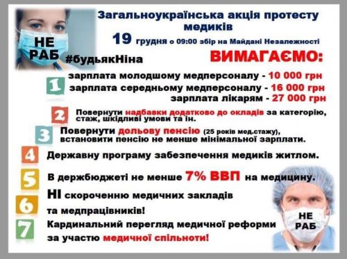 Итак, 19 декабря медицинские работники со всех уголков Украины собрались на акцию протеста под Верховной Радой. К митингующим вышел замминистра здравоохранения Андрей Семиволос, напомнивший, что в следующем году вводится новый этап реформирования системы здравоохранения — второго уровня. «Мы отходим от советской тарифной сетки для того, чтобы вы могли получать заработную плату за предоставленные услуги», — заявил замминистра.