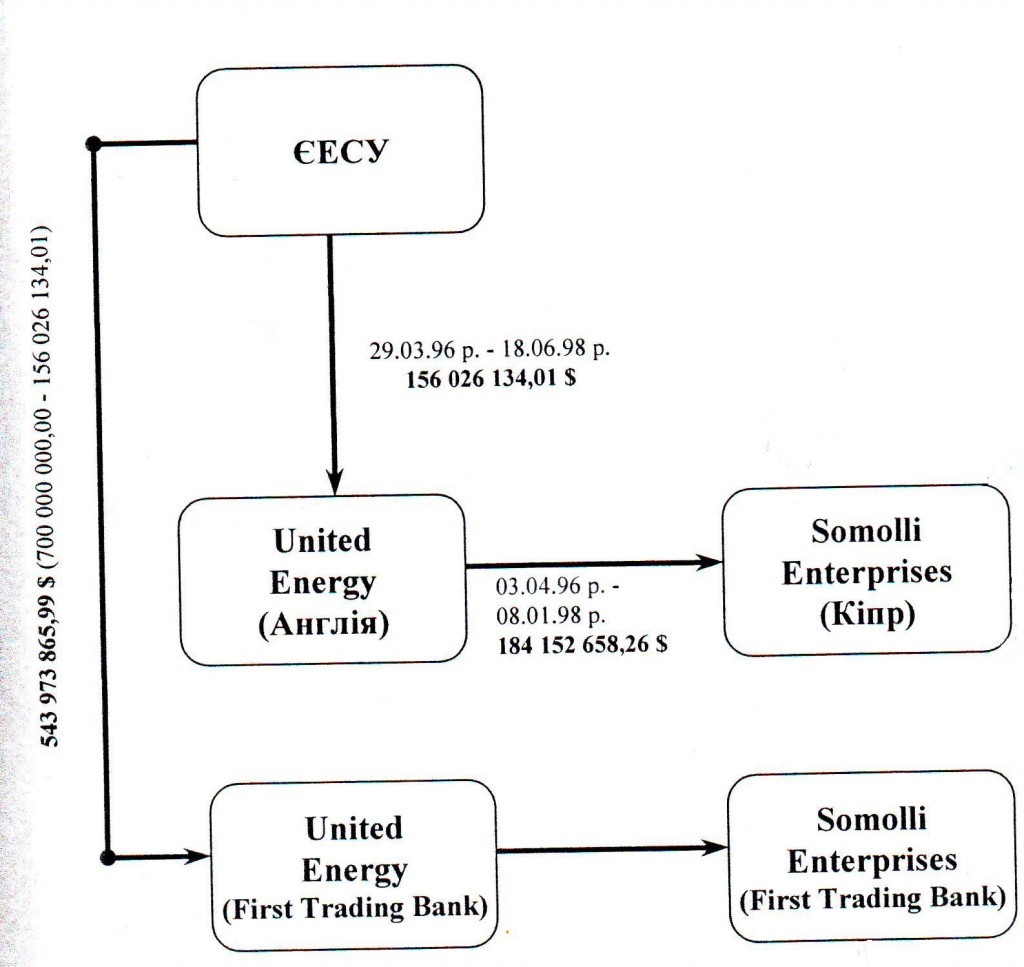 Так вот, как писалось ранее, схема действительно проста. ЕЭСУ, переводила деньги через банки United Energy (Великобритания) и First Trading Bank на счета компании «Somolli Enterprises LTD», зарегистрированной на Кипре.