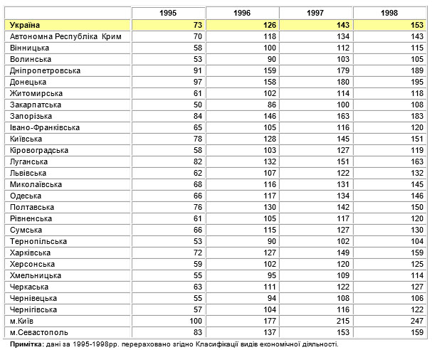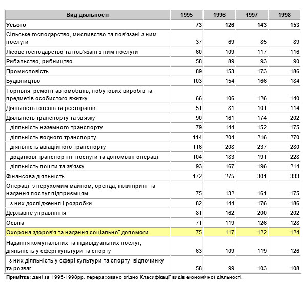 Динаміка середньомісячної заробітної плати за видами економічної діяльності у 1995-1998 роках