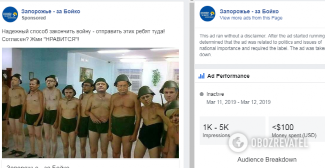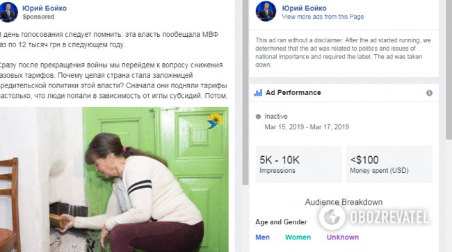 Бюджет кампании в Facebook лидера "Батькивщины" – сотни тысяч долларов. Чаще всего одна публикация обходилась в $100-499, но и есть и те, за которые пришлось отдать $5-50 тыс.