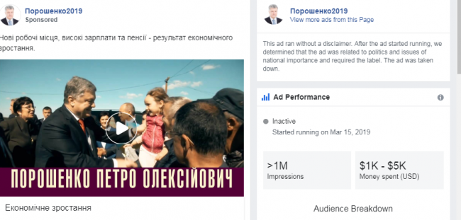 Общая стоимость размещенных Порошенко рекламных постов в Facebook составляет несколько десятков тысяч долларов.