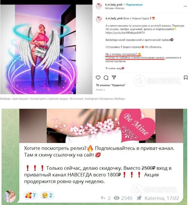 Отметим, что помимо аккаунтов в социальных сетях и на видеохостинге, у Майерс есть и закрытый приватный Telegram-канал, вход в который доступен только после оплаты «взноса».