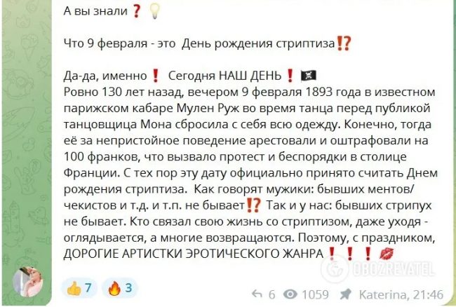 Помимо этого, девушка продолжает работать в стриптиз-клубе, а свою работу описывает как «самую лучшую в мире». 9 февраля девушка отмечала профессиональный праздник, который уже считает своим, – День рождения стриптиза.