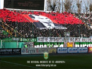 Флаг ОУН-УПА стал официальным символом "Карпат". Таким образом, к зелено-белым уветам команды добавились еще и красно-черные.