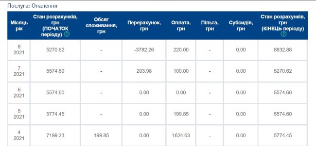 В июле Киевтеплоэнерго отняло от ее общей суммы долга 204 грн, а в августе насчитало дополнительных 3782 грн.