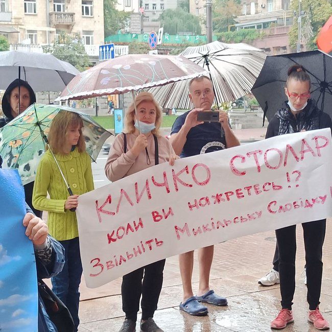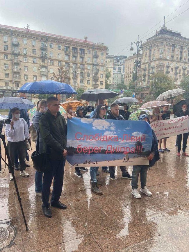 У стен КГГА проходил пикет с требованием прекратить незаконное строительство в прибрежной зоне Днепра Никольско-Слободской, 7-9.