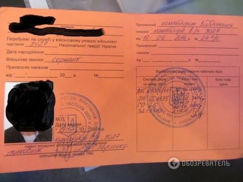 В некоторых удостоверениях стоит подпись Семенченко, выступающего в качестве командира воинской части 3027 и подполковника. В других, аналогичных удостоверениях бойцов батальона «Донбасс» — датированных тем же, 19 июня, стоит подпись командира в/части 3027 Национальной гвардии Украины, полковника В. Г. Мусиенко.