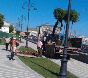 Вчера жители столицы могли наблюдать весьма странную картину - высаженные к Дню Крещения деревья погрузили на авто и увезли.