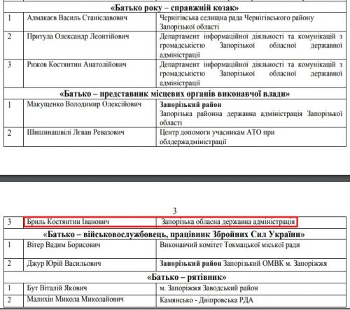 17 сентября, были подведены итоги конкурса “Отец года” , который был организован Запорожской облгосадминистрацией. Одним из победителей конкурса стал глава Запорожской ОГА Константин Брыль, он был награжден дипломом “Отец года” в номинации “Представитель местных органов исполнительной власти”.