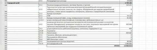 Основные статьи затрат – подкуп избирателей через «Центр социальной ответственности», который только в июне получил 106 000 долларов. Прикрытие этого подкупа – социальная помощь одиноким старикам и нетрудоспособным гражданам. В обмен на эту помощь они обязуются голосовать за нужного кандидата. То, что в просторечии называется «раздача гречки».