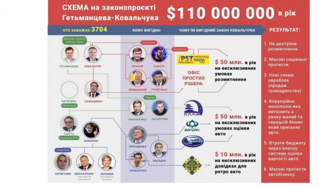 Так, Даниил Гетманцев вместе с нардепом Александром Ковальчуком фактически заблокировали рассмотрение в парламенте законопроекта № 3704 о доступной растаможке автомобилей на еврономерах. Именно принятия этого документа требуют активисты и владельцы таких авто.