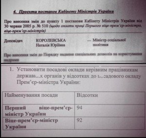 Сегодня Наталья Королевская определила заработную плату своим коллегам по Кабинету министров.