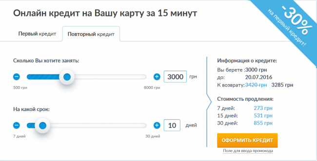 Можно ли получить кредит за 1 минуту? Да, причем всего по двум документам, в удаленном режиме и круглосуточно. Если вам срочно потребовались деньги в долг, возьмите срочный займ без отказов и проверок на ikredit.in.ua. Обратите внимание: многие микрофинансовые организации здесь предоставляют первый микрокредит без процентов!