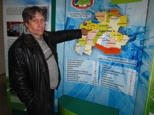 Местный фермер Владимир Боровец показывает точку на карте Марьинского района, где должно быть обозначено село Дальнее. Почему населенный пункт, в котором живут 120 семей, исчез с карты — не понятно. Может, местная власть, при покровительстве которой Радзишевская “кошмарит” крестьян, готовится переименовать село в Ларисовку?
