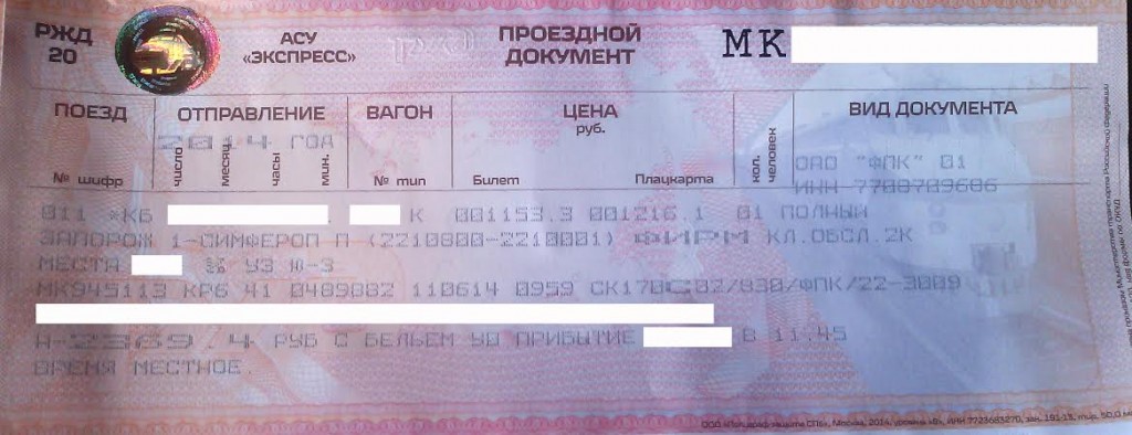 Расценки: 12-й поезд «Симферополь-Киев» - 4 894 руб. 40 коп. (1631 гривна). Ранее стоимость составляла 380 гривен. Из Запорожья в Симферополь можно доехать за 2 369 руб 40 коп – 790 гривен, тогда как ранее было не дороже ста гривен.